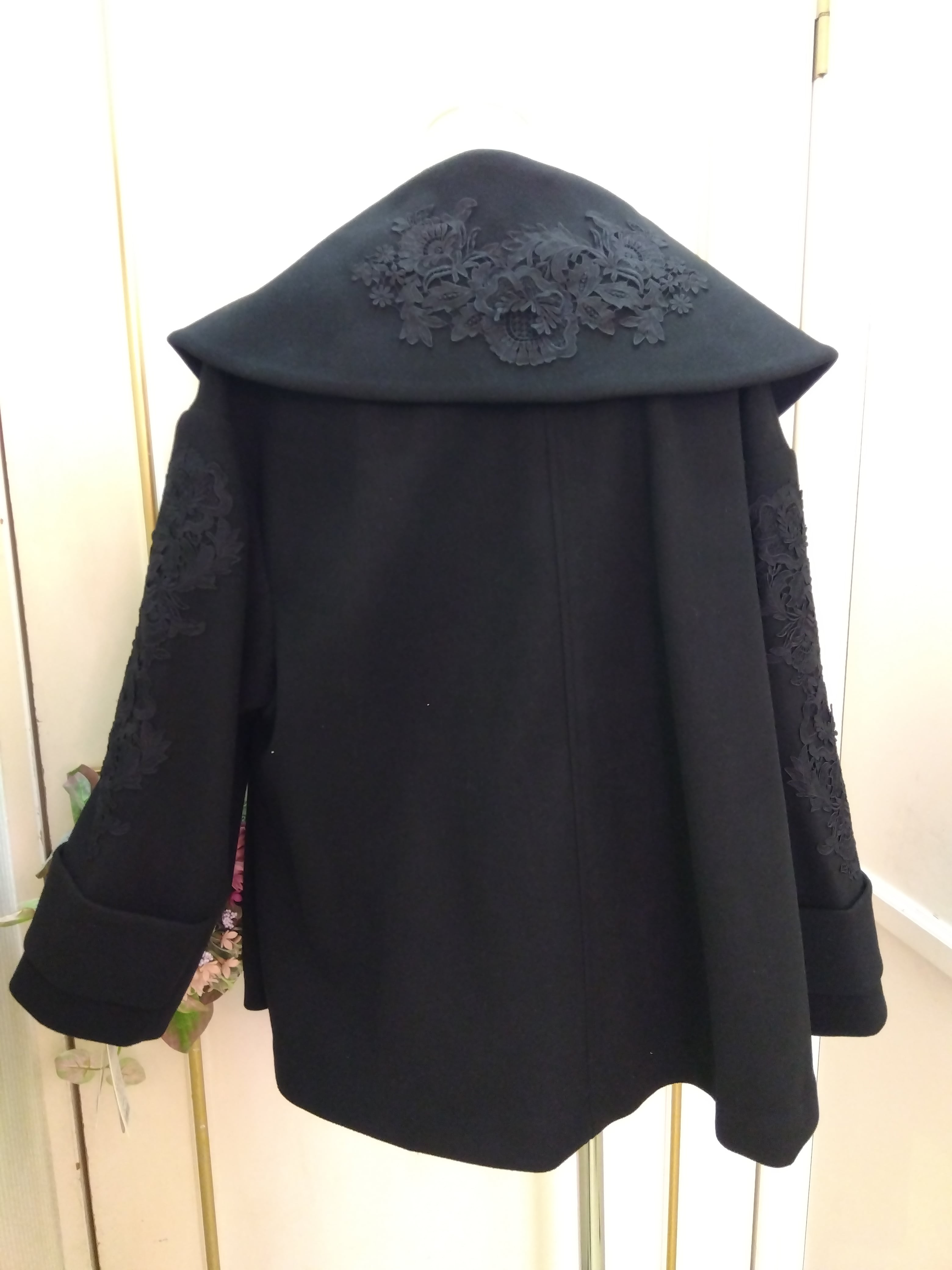 大きな襟がかわいい。そして、花モチーフがスーパービューティーらしいお上品なアウターです♡