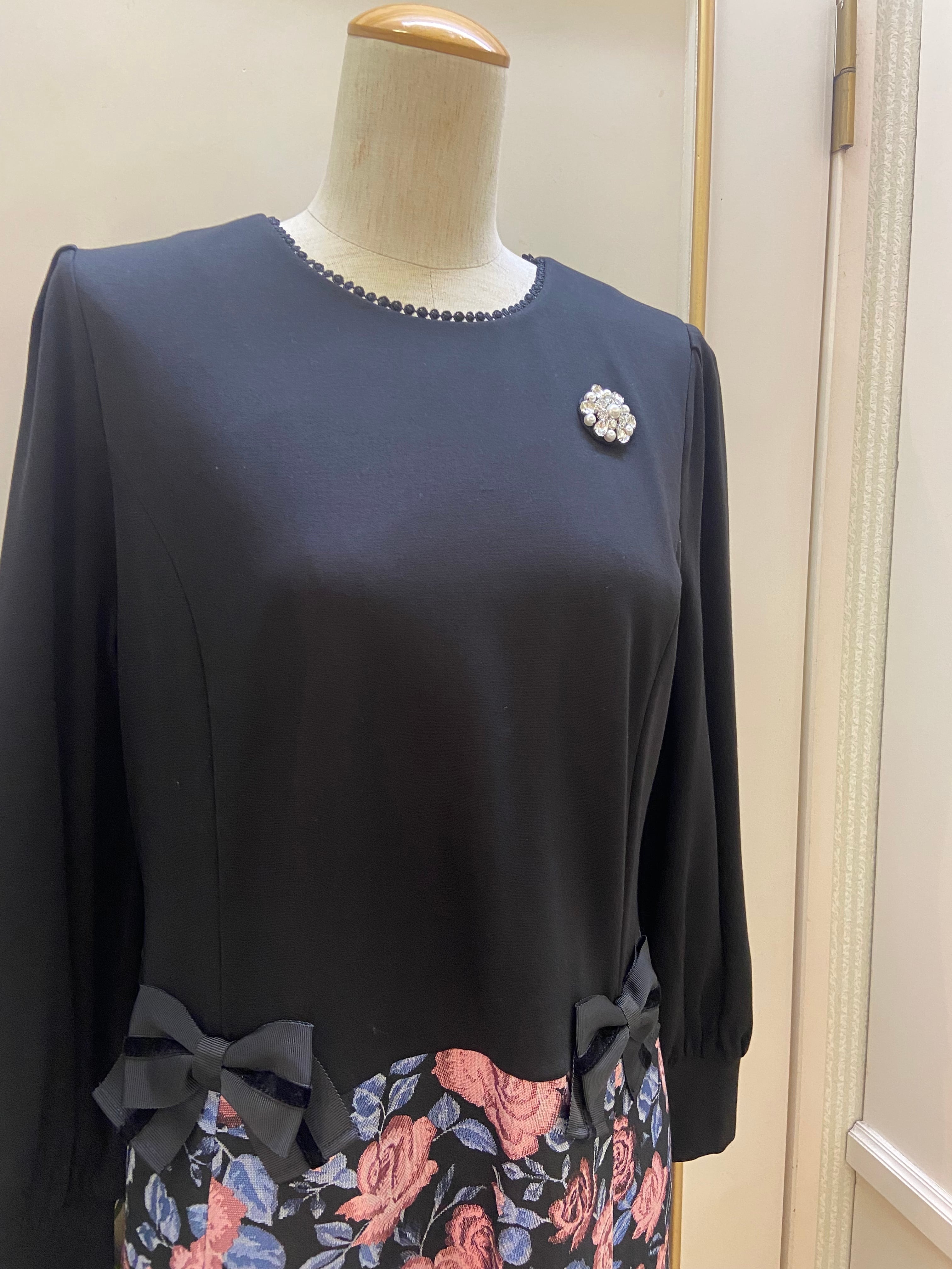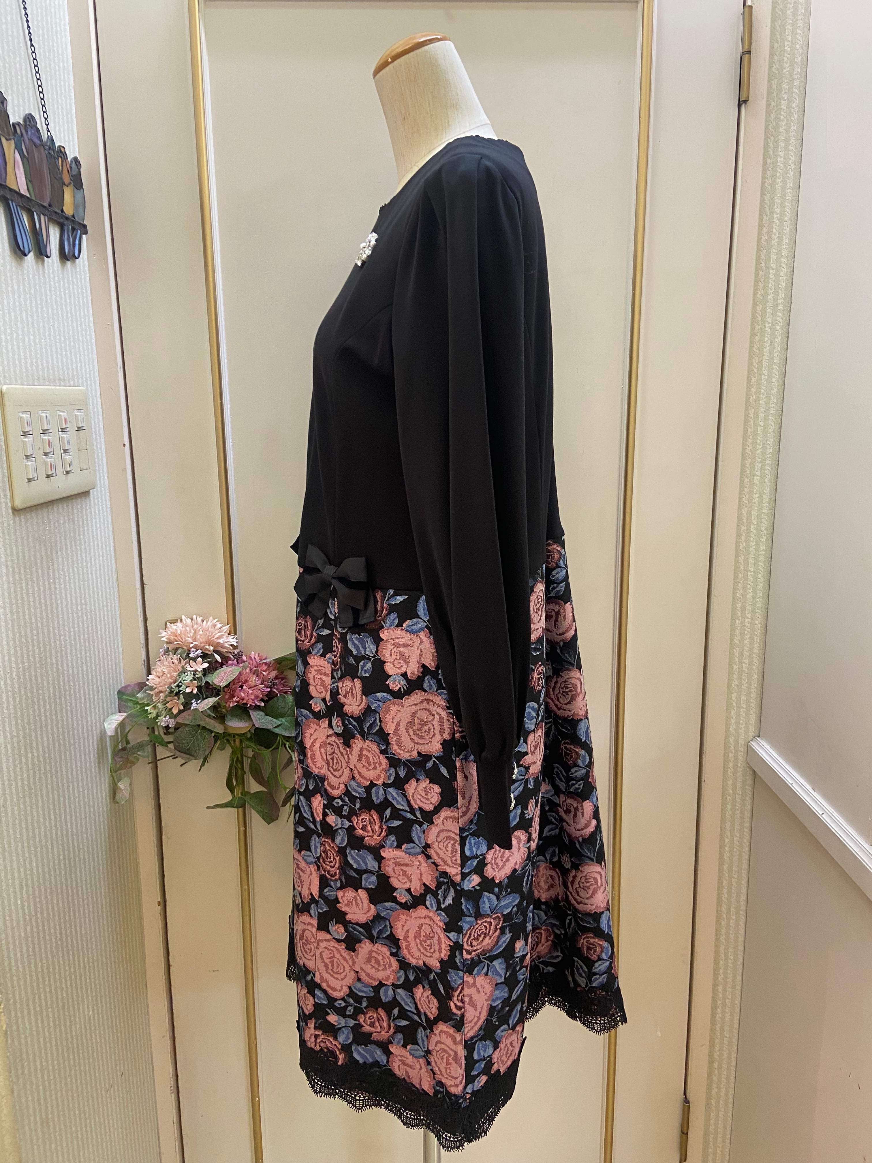 【新作】2526009 スーパービューティー 花柄ジャガード織切替ワンピース