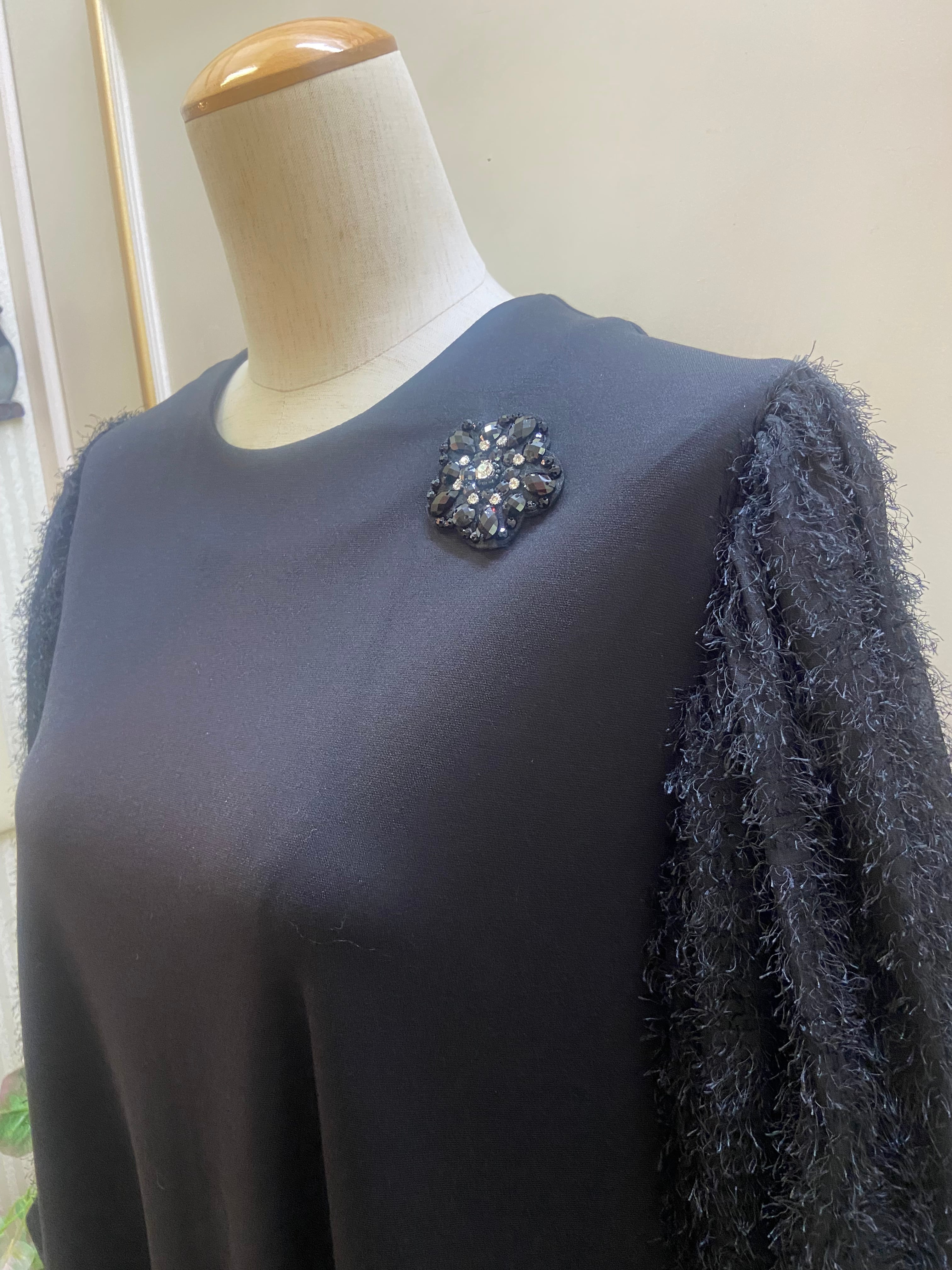 七分袖のデザインが特徴で、柔らかな起毛素材が腕を包み、優しい肌触りが魅力的なお洋服。