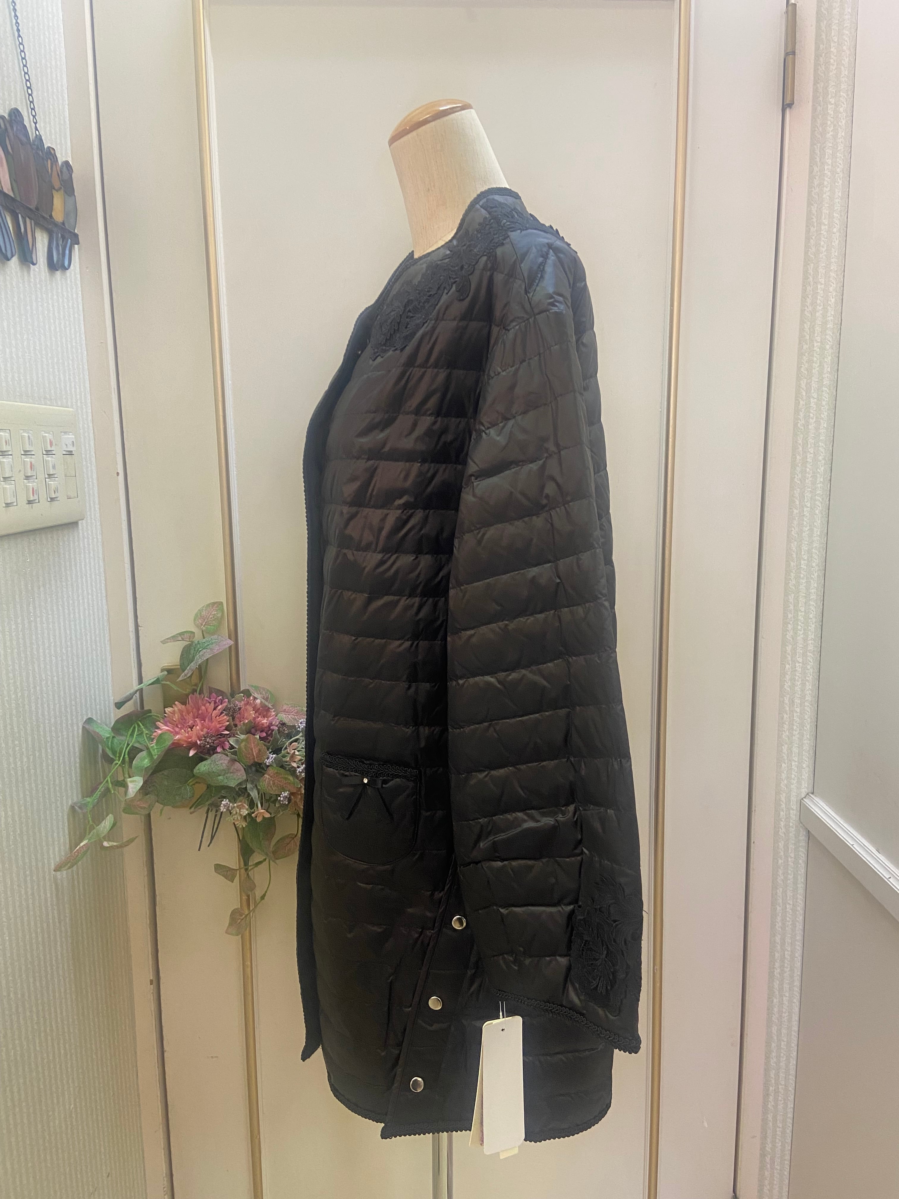 軽やかな着心地でありながらしっかりと暖かく、寒い季節も快適に過ごせるライトダウンジャケット。 フロントを彩るビジューボタンが華やかな輝きを放ち、特別感のある佇まいを演出します。