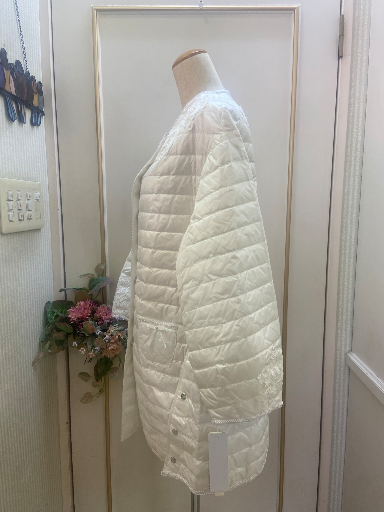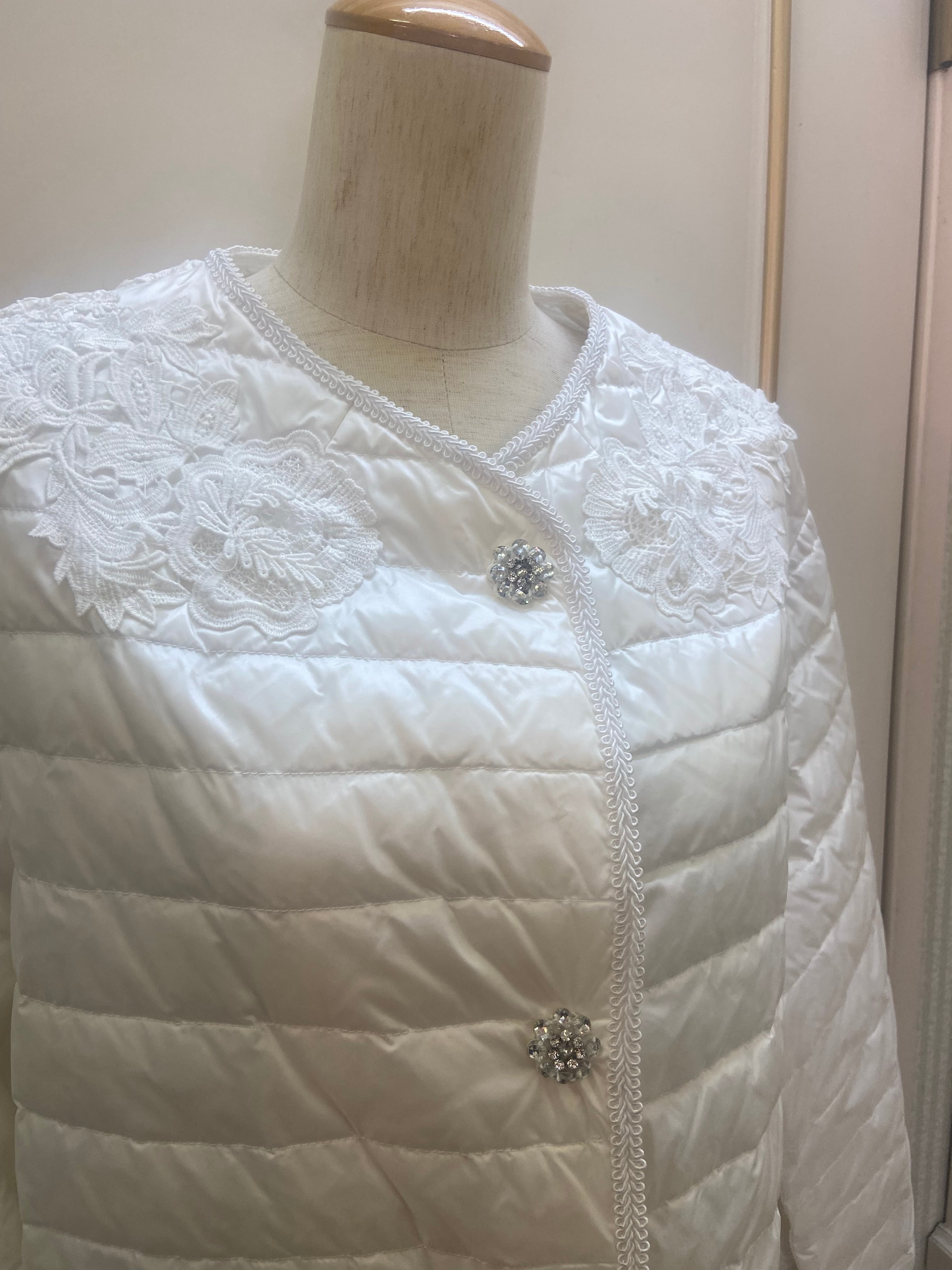 軽やかな着心地でありながらしっかりと暖かく、寒い季節も快適に過ごせるライトダウンジャケット。 フロントを彩るビジューボタンが華やかな輝きを放ち、特別感のある佇まいを演出します。