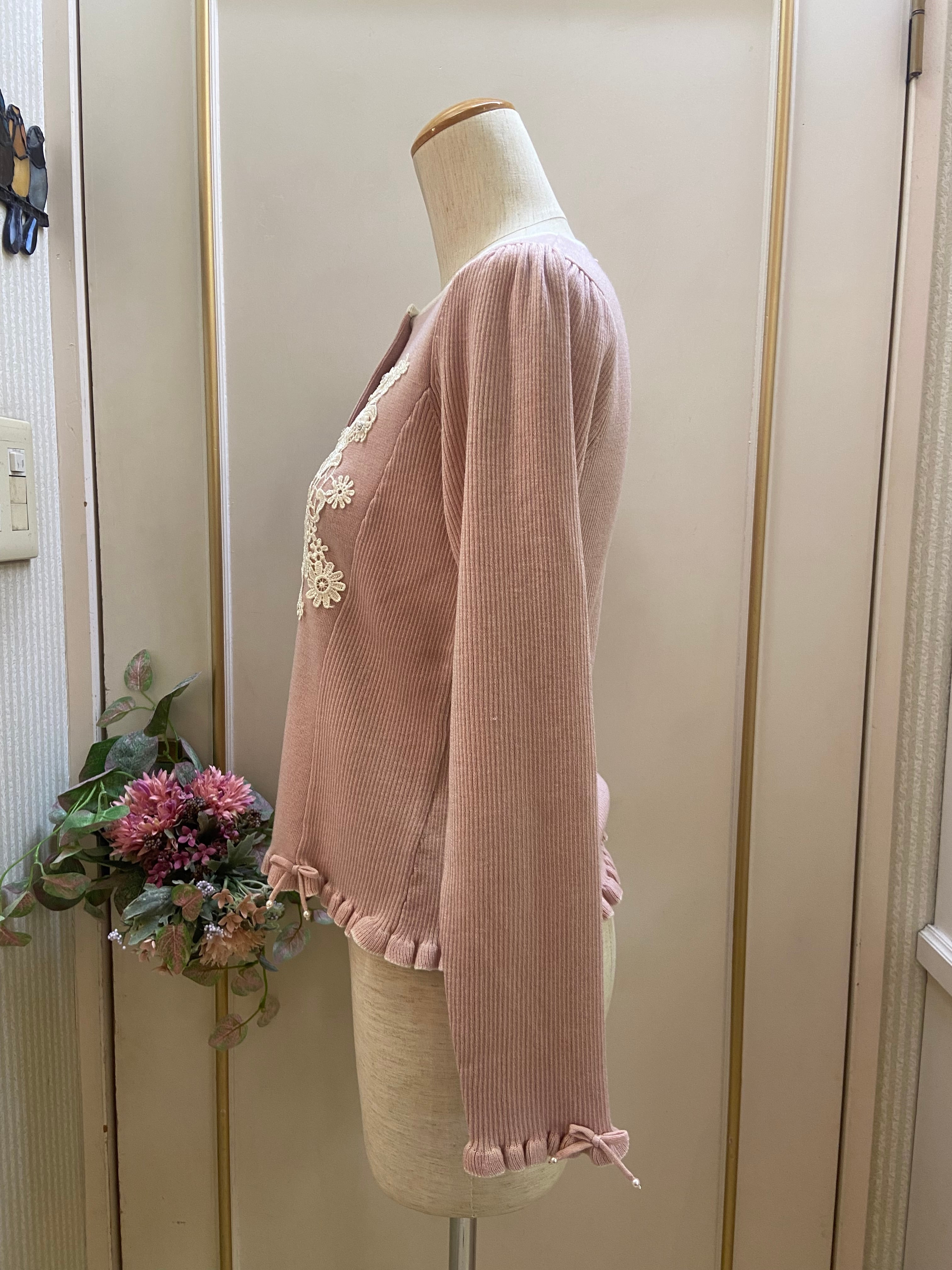 どんな服にも合わせやすく、胸元のお花モチーフが可愛いおすすめの一枚です。