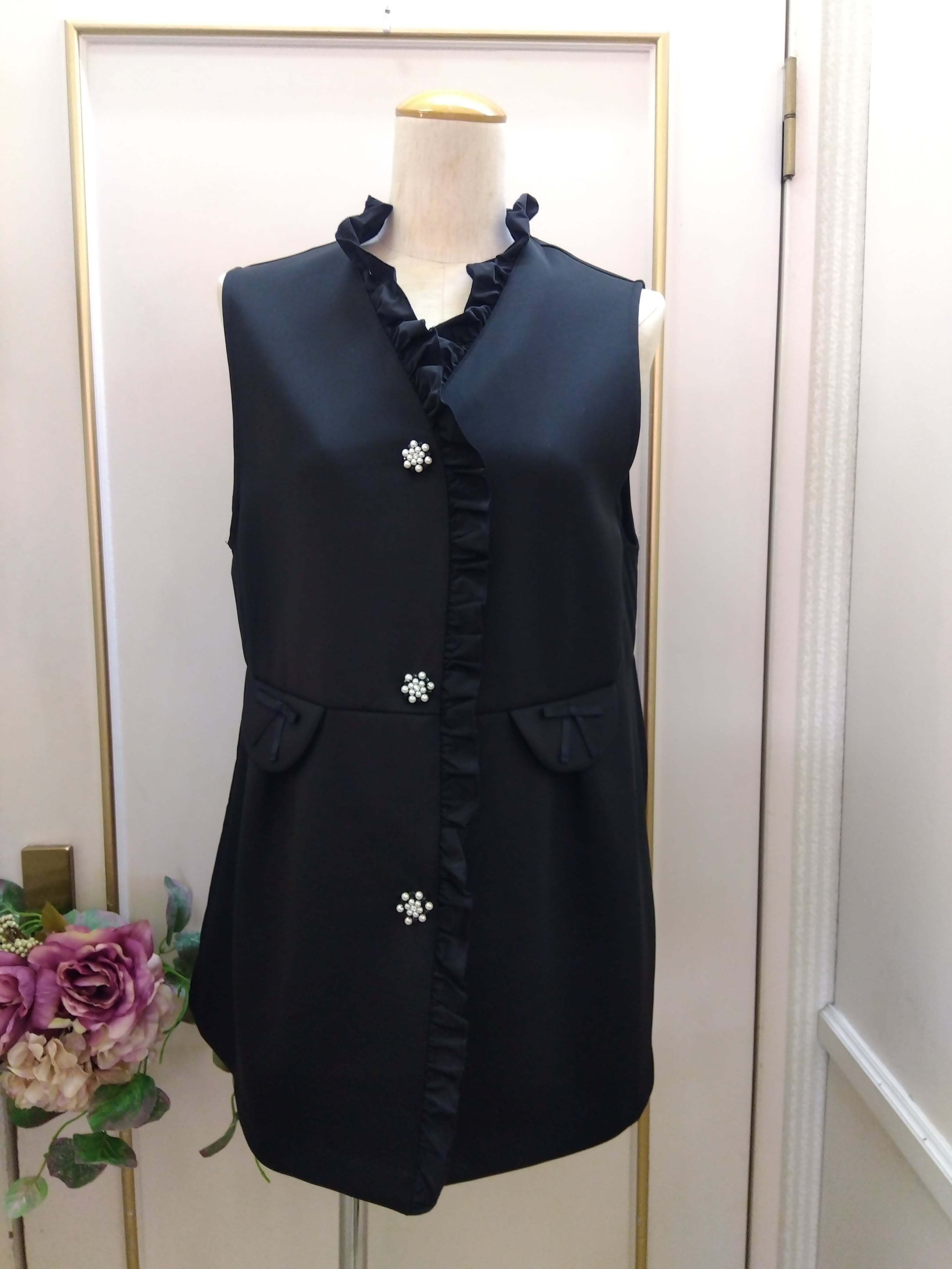前面ポケットはフェイクです。襟元のフリルがエレガント♡