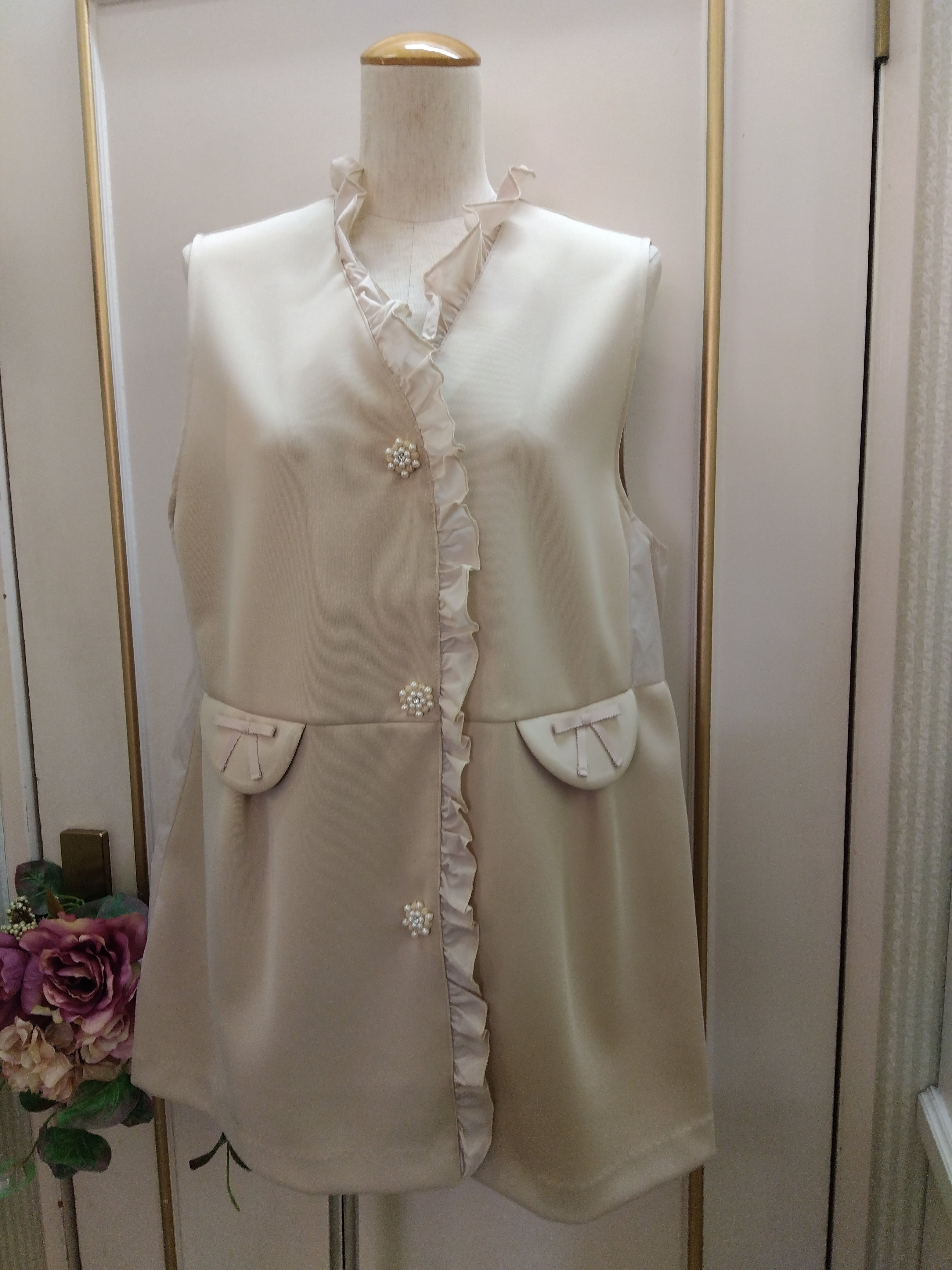 前面ポケットはフェイクです。襟元のフリルがエレガント♡