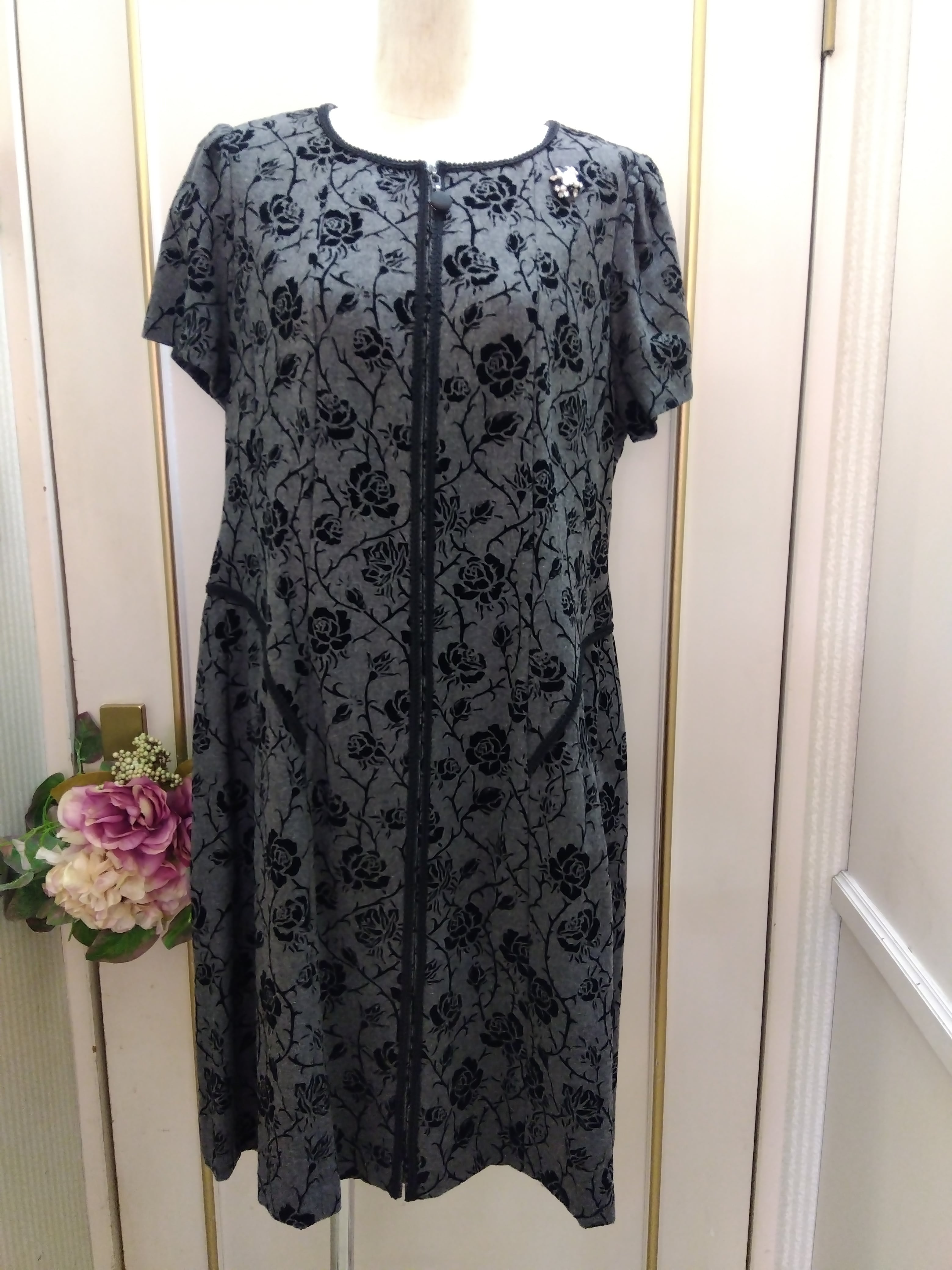 前面ファスナー、ローズ柄のお上品なワンピースです♡