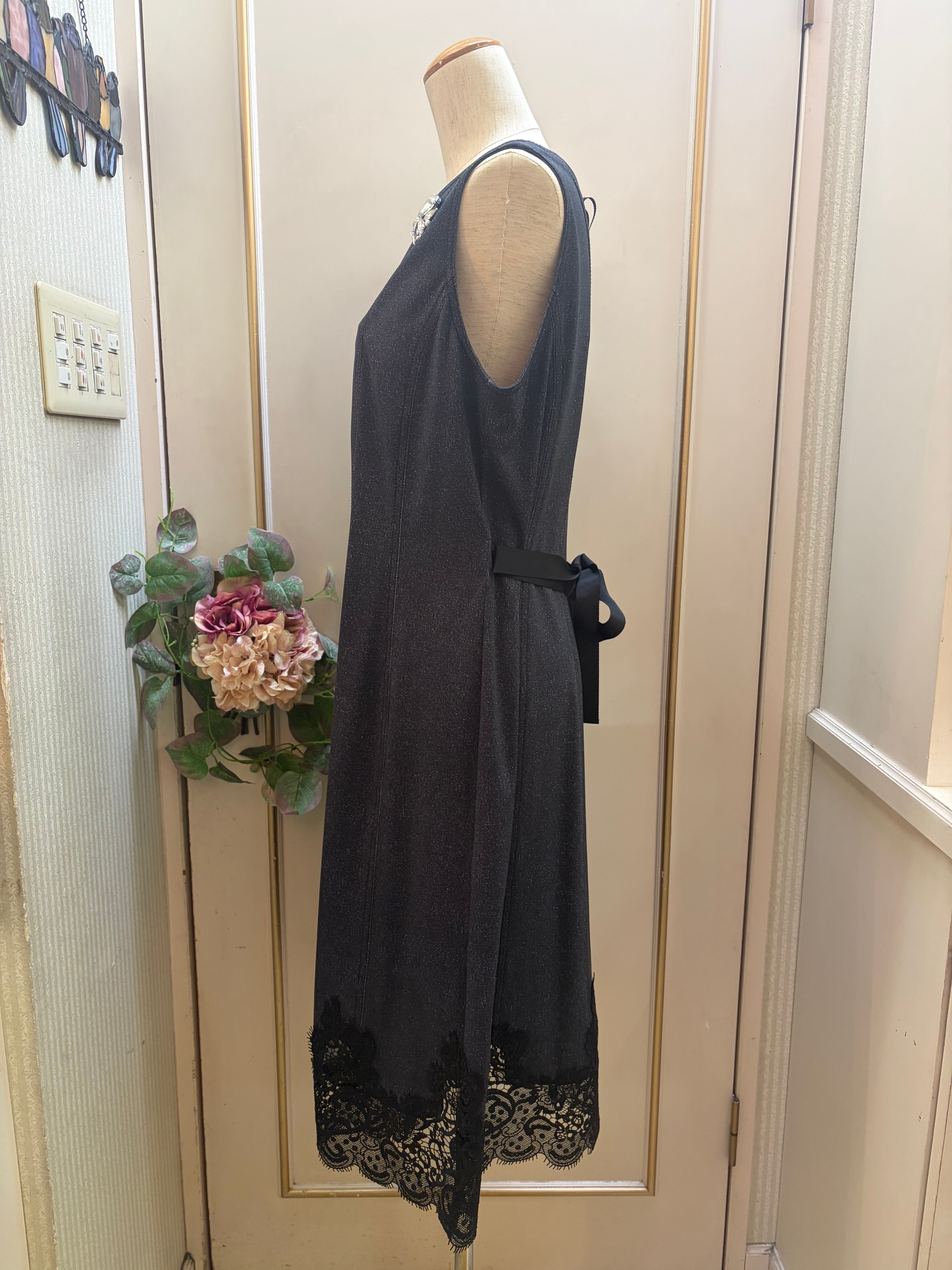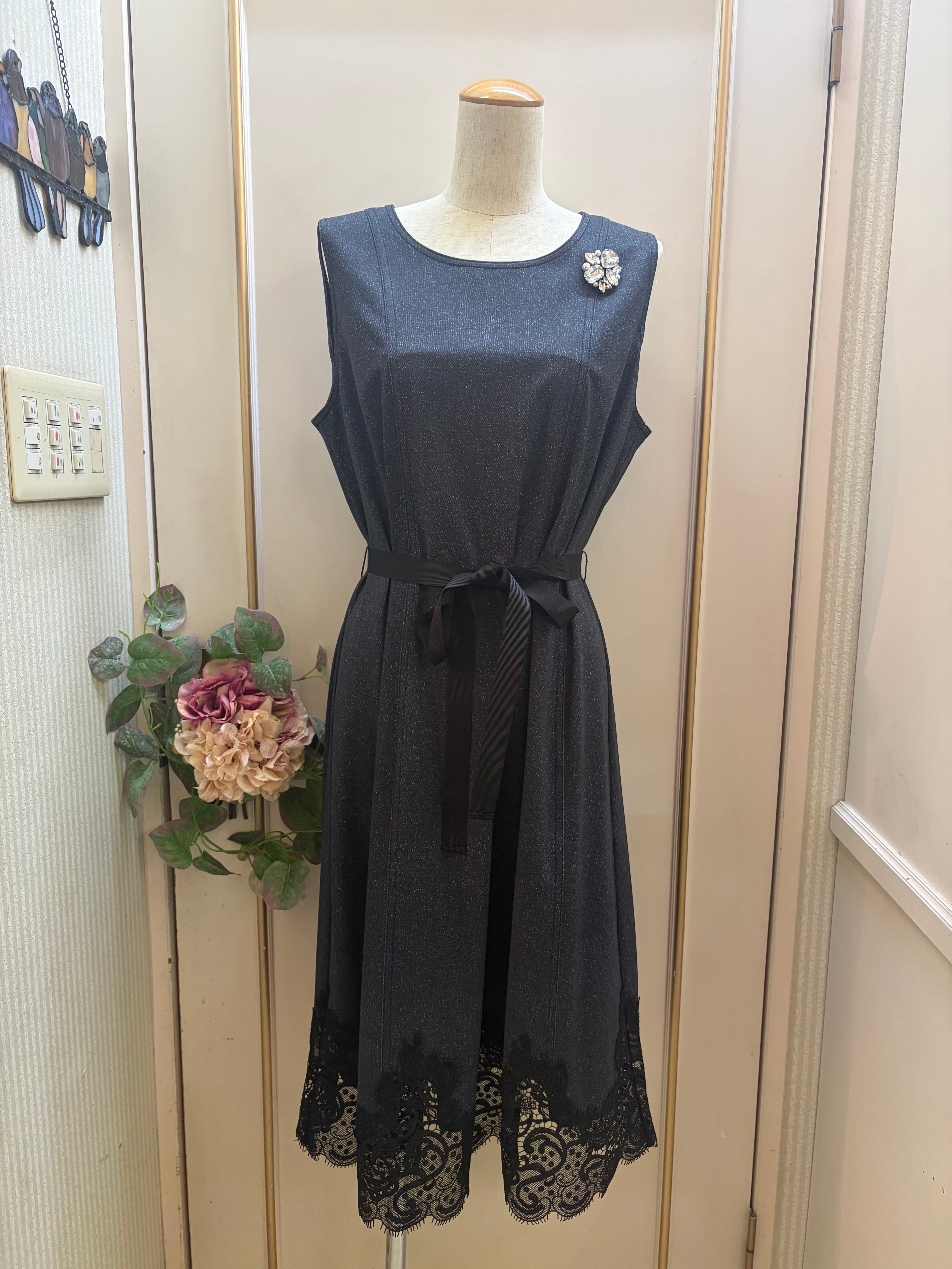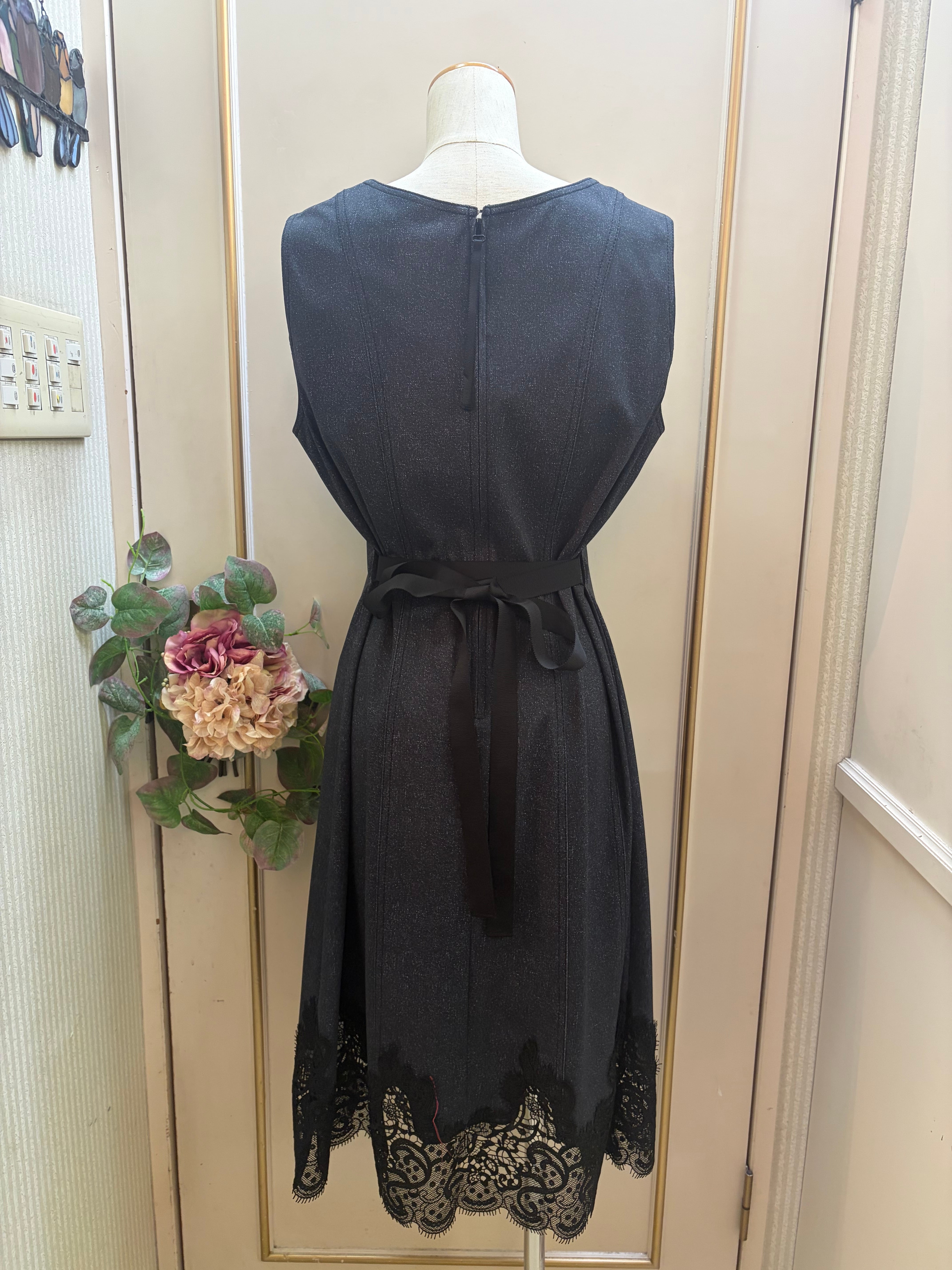 シンプルでありながら洗練されたデザインが特徴の上品なワンピース。ウエストのリボンでシルエットを調整でき、異なる印象を楽しむことができるのも魅力です。