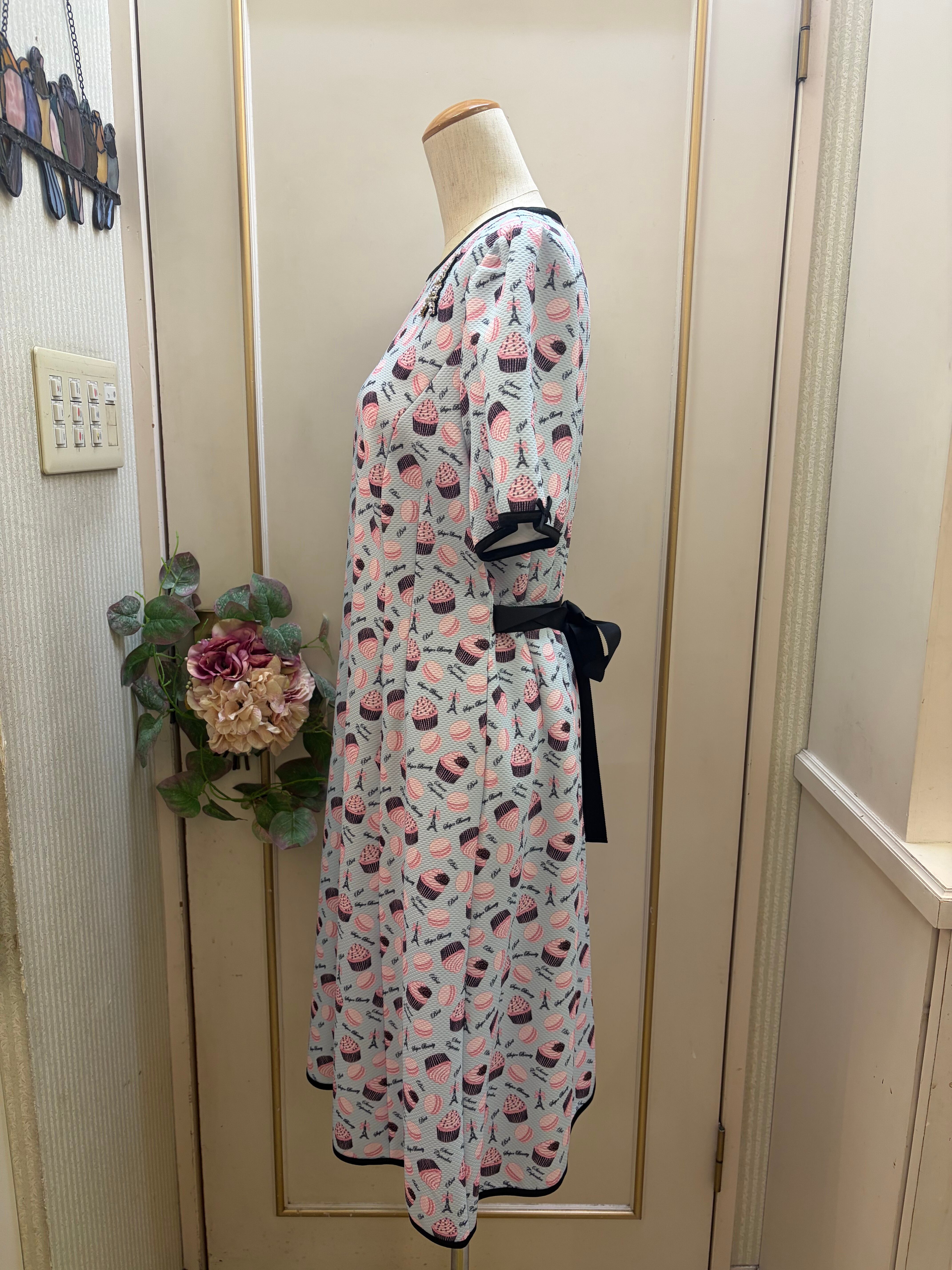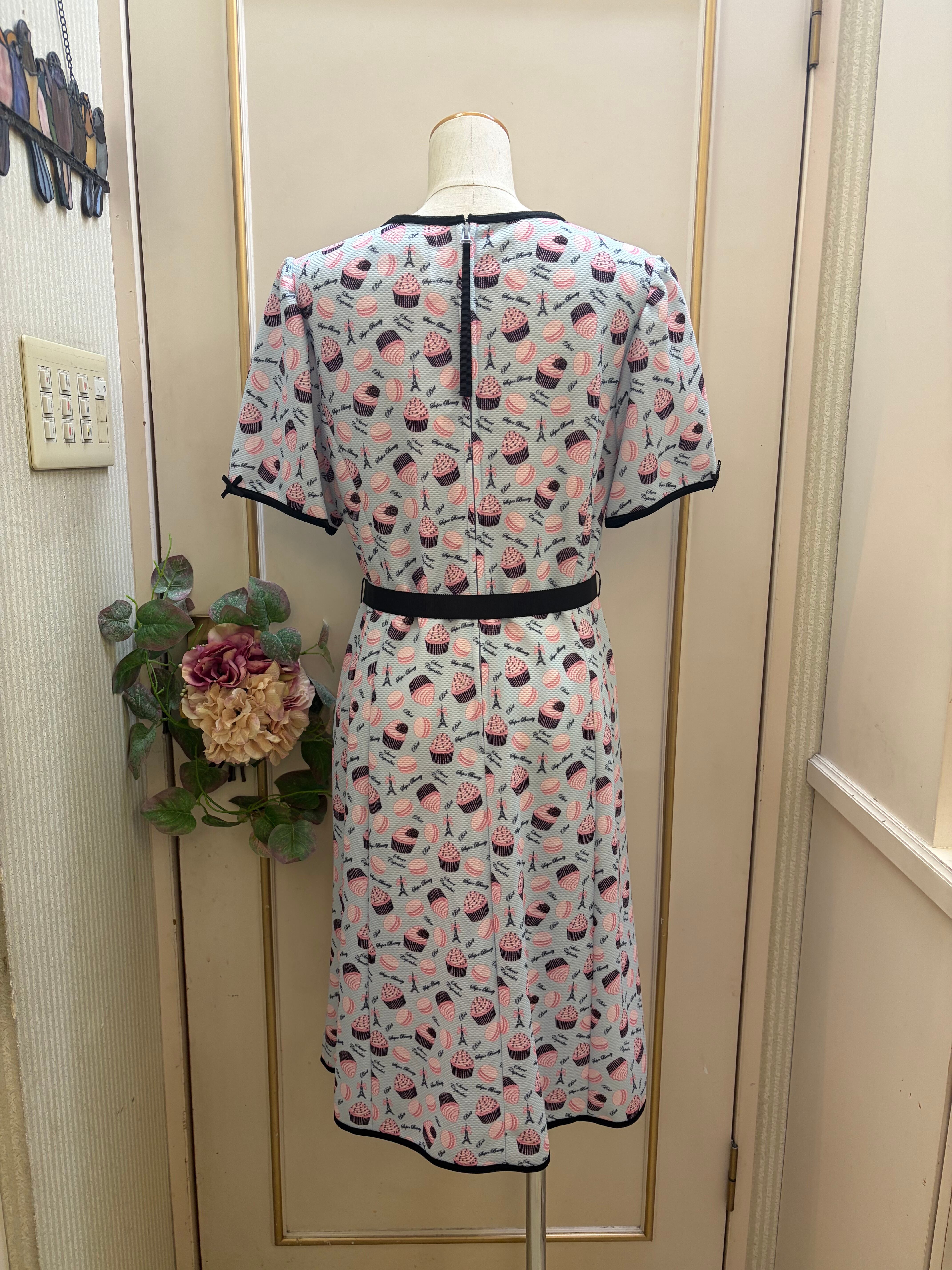 カップケーキとマカロンで可愛さを演出♡ウエストのリボンをつけて2パターンの着方をお楽しみください。