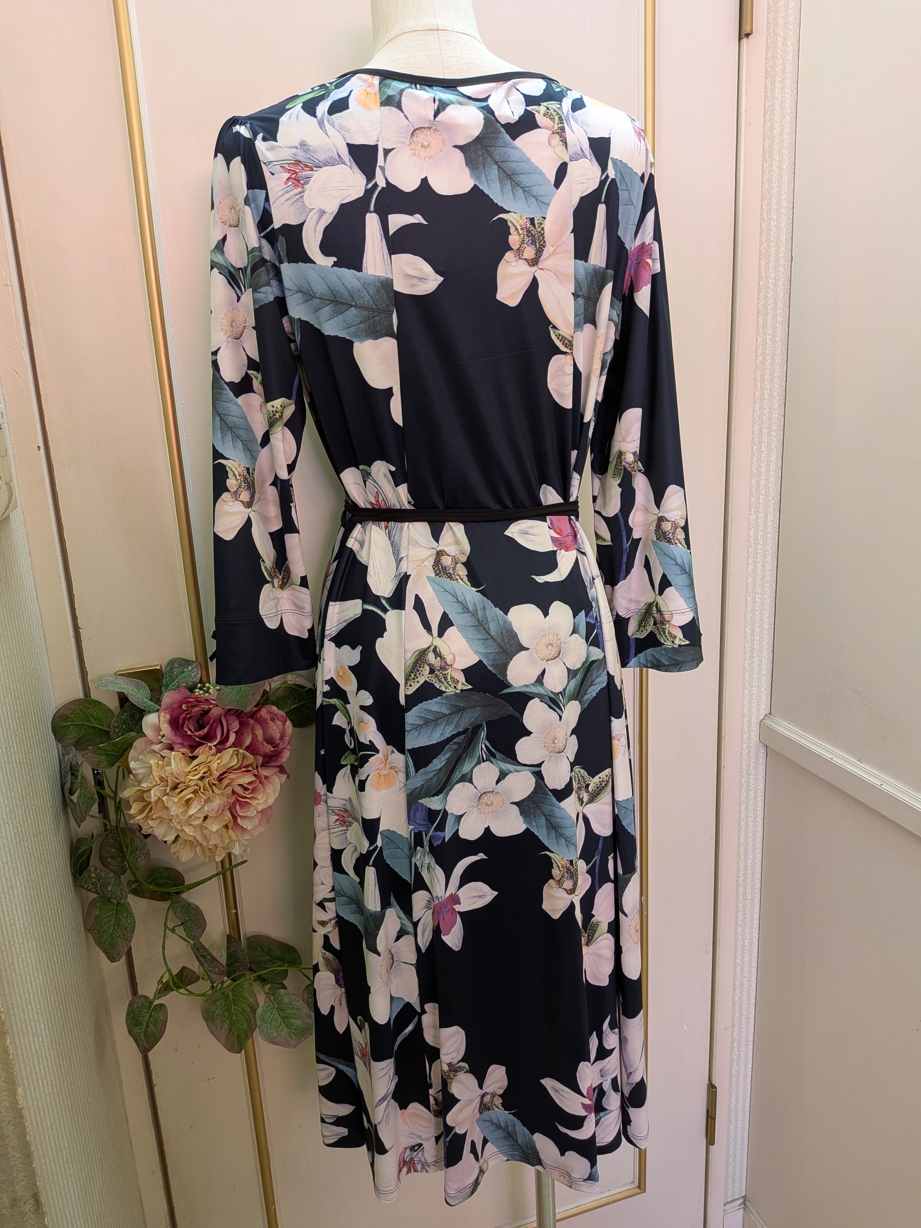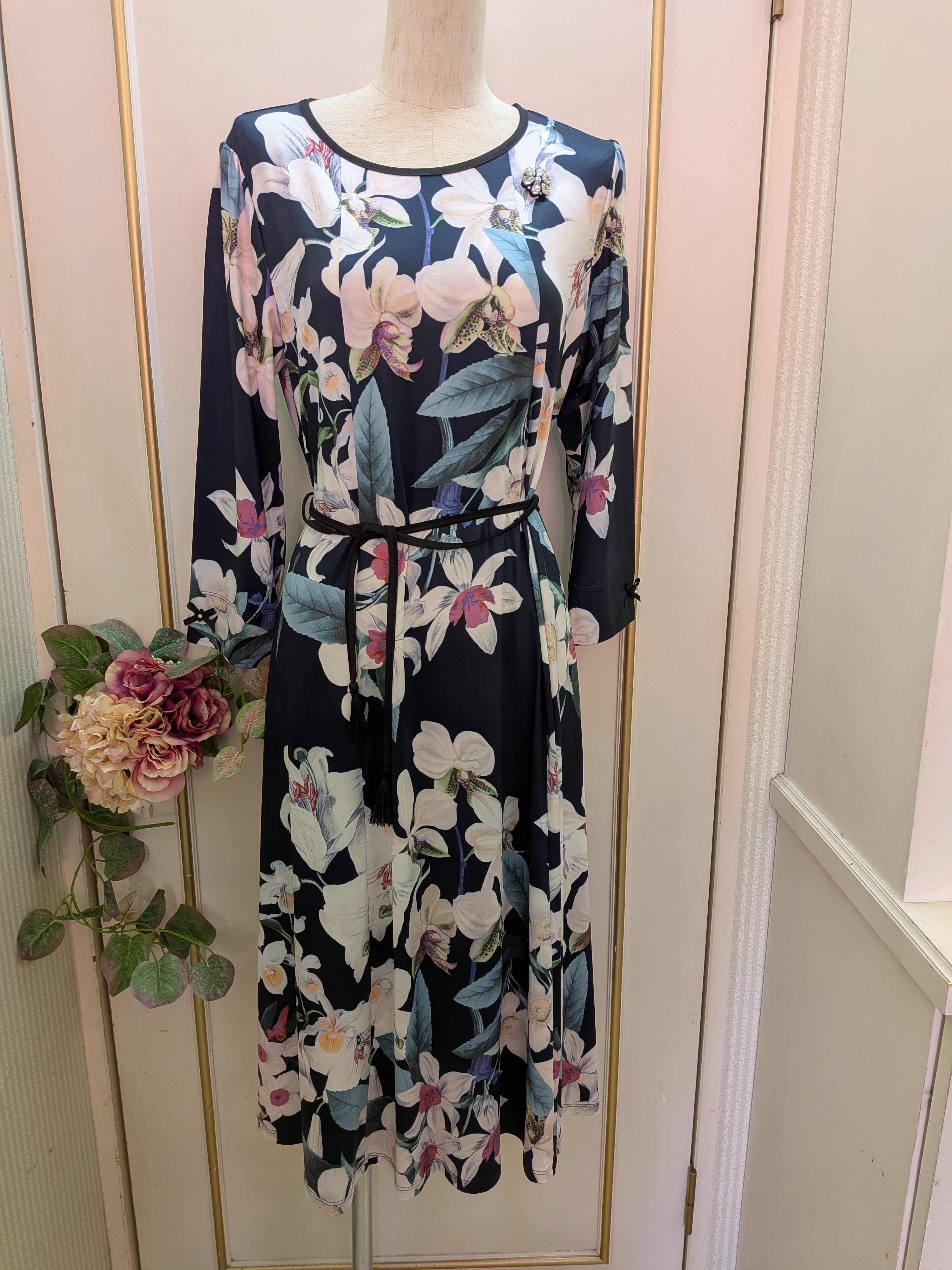 大きなお花のデザインが特徴。ウエストマークも出来、サラリとした素材で、春夏にピッタリなワンピースです♡