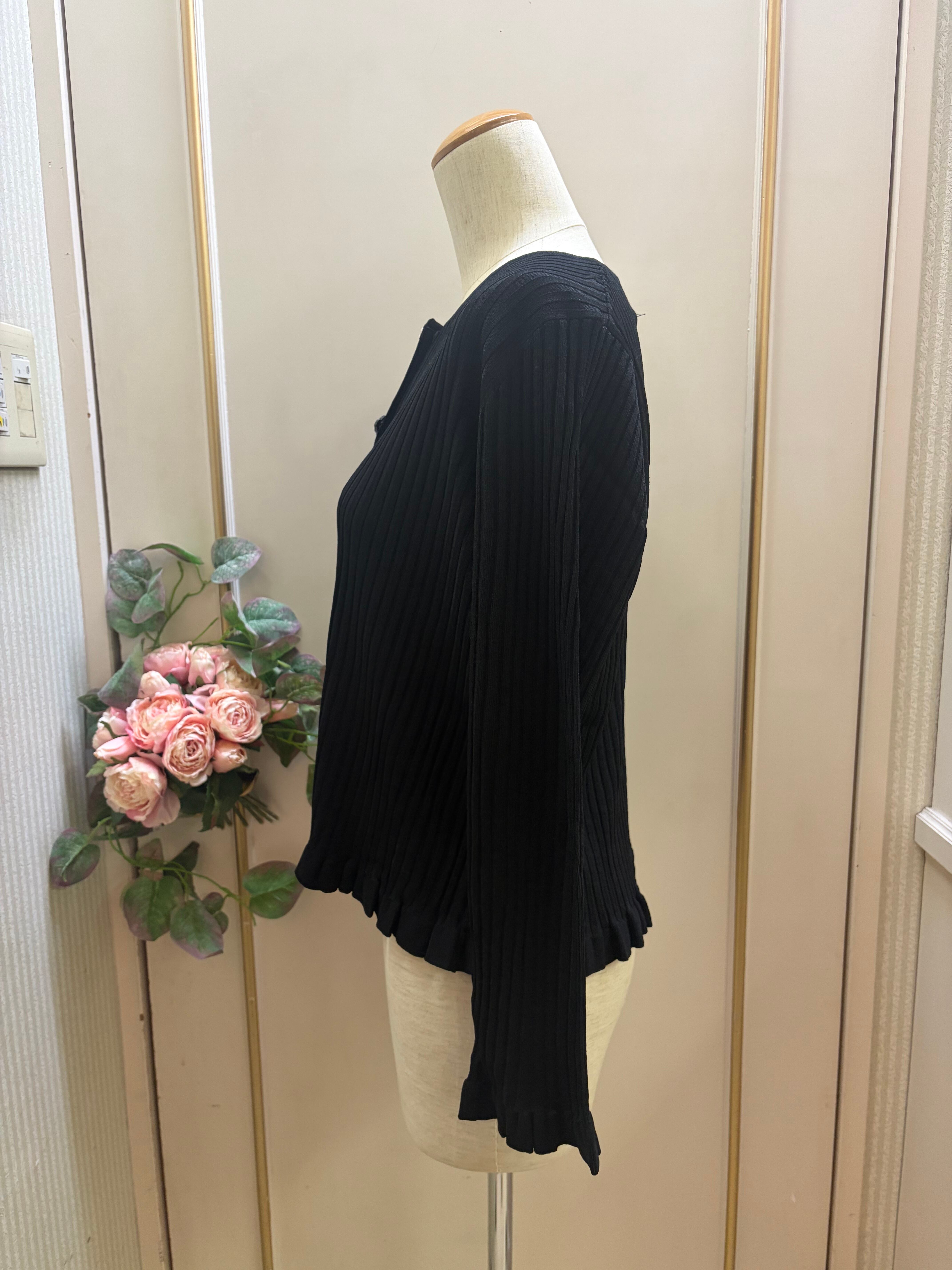 上品なリブ編みの質感に、裾のフリルが華やかさをプラスしたデザイン♡