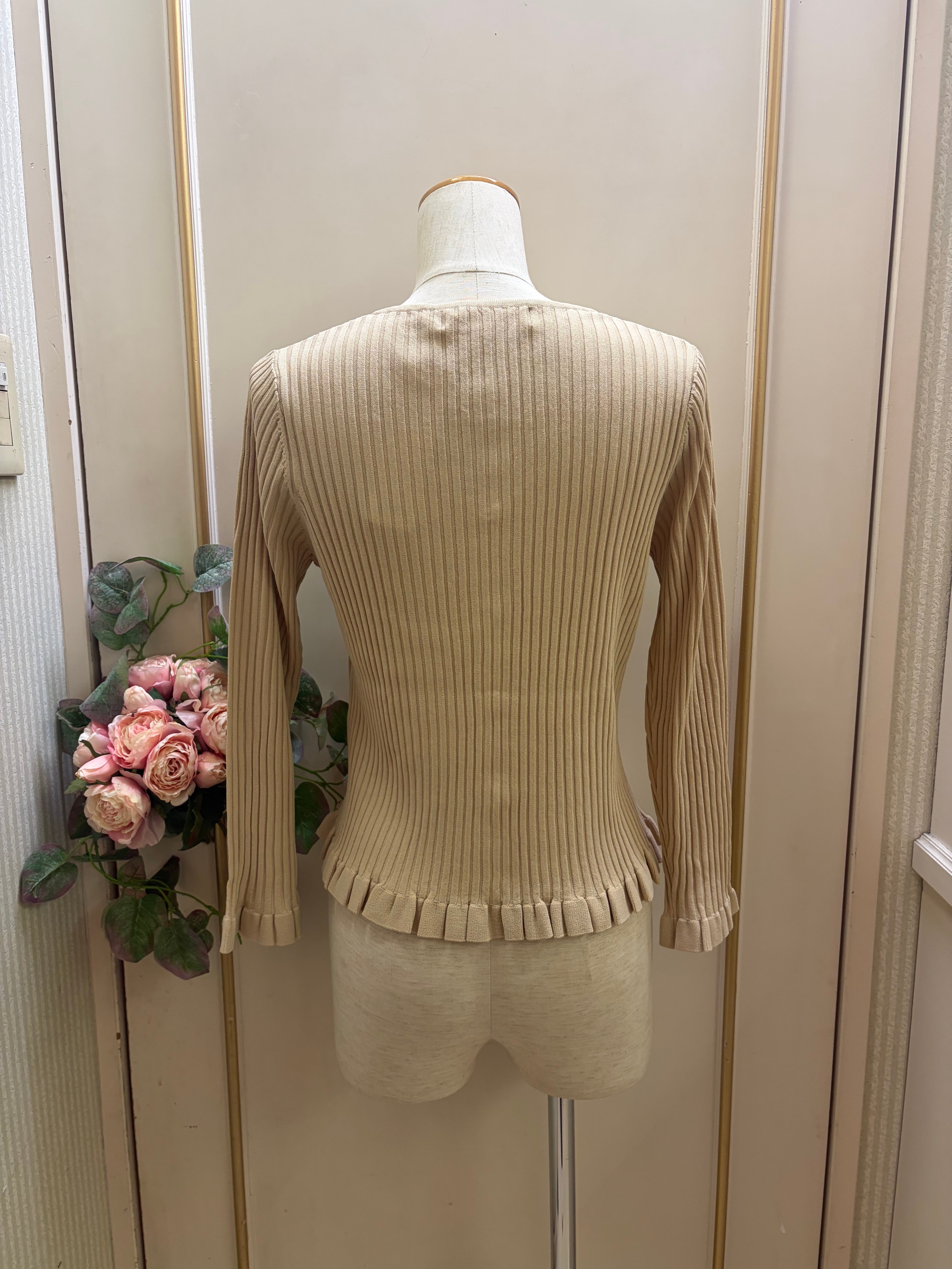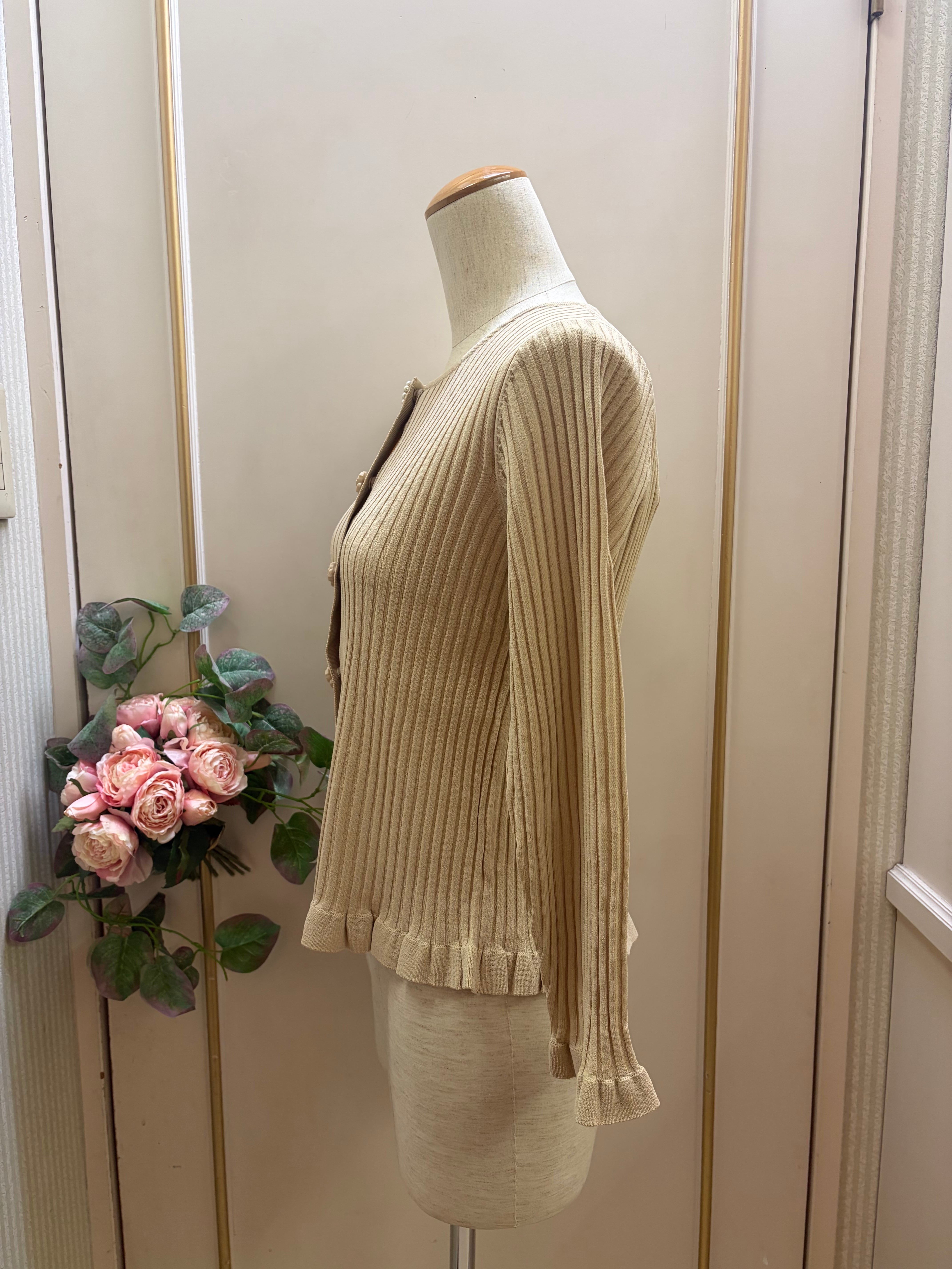 上品なリブ編みの質感に、裾のフリルが華やかさをプラスしたデザイン♡