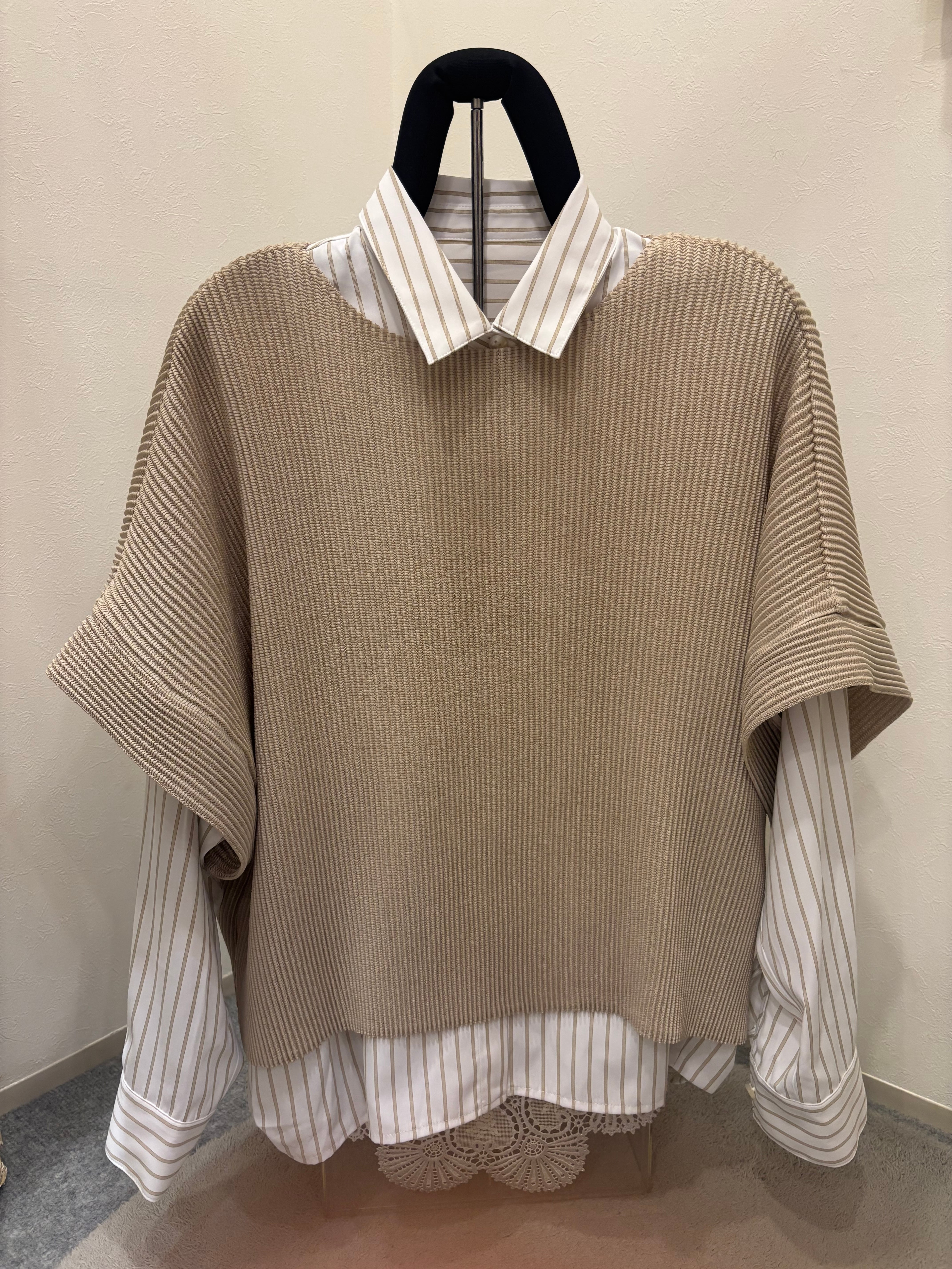 【スペッチオ】451-710 21 アンサンブル シャトルオーバーサイズT+先染めストライプシャツ