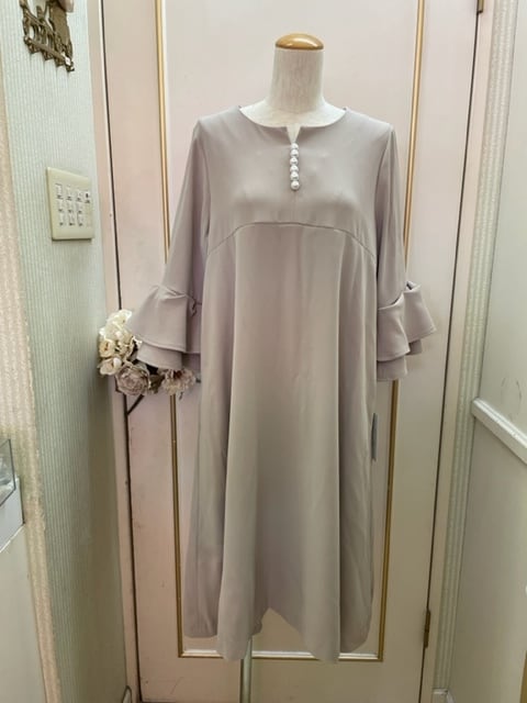 【トワレ】323-103 50 Lサイズ ベージュパール付きワンピース 日本製