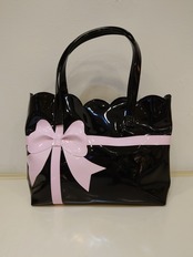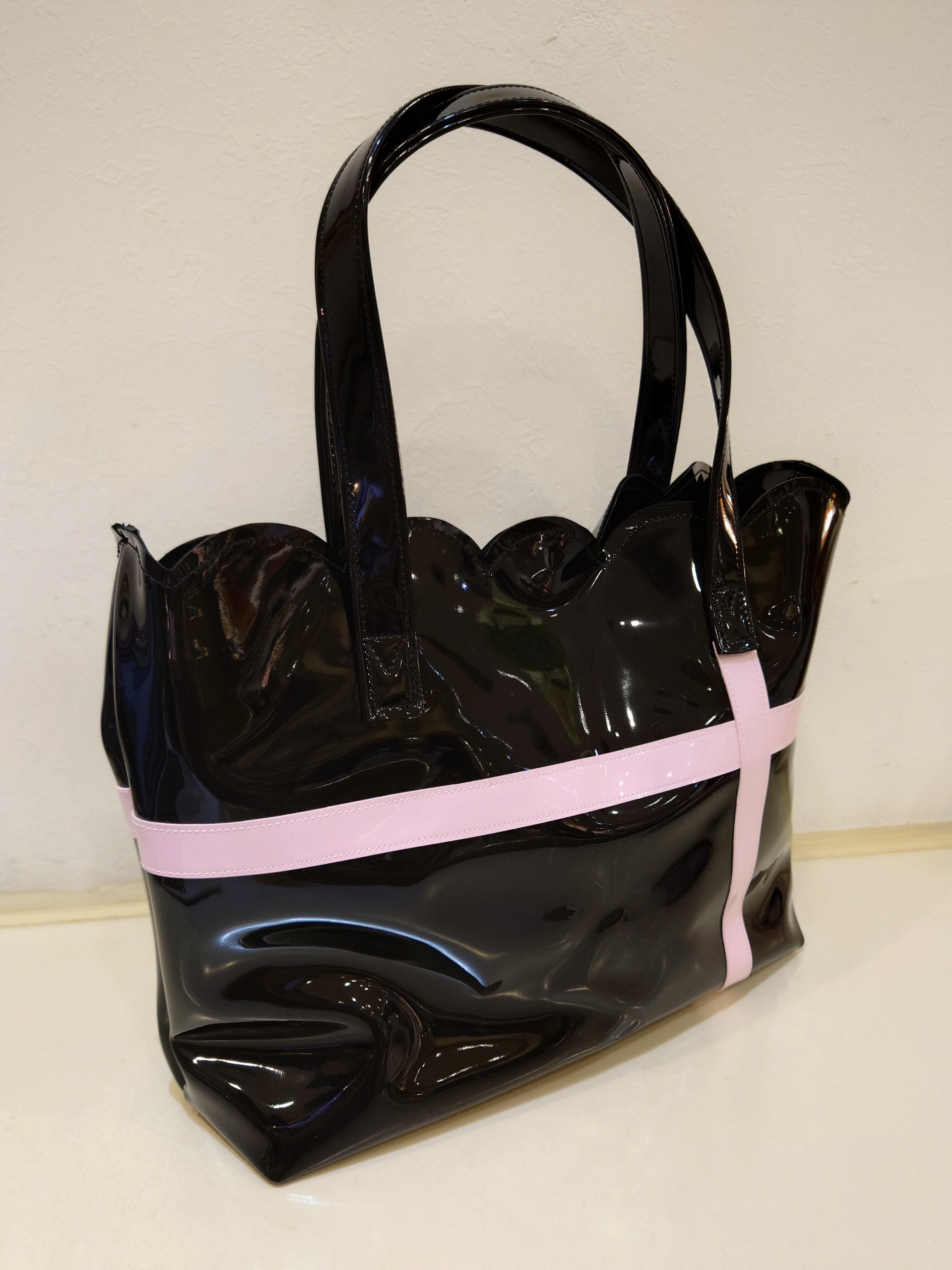 【神戸ブランド ビバリー】スカラップバッグ 黒×ピンク