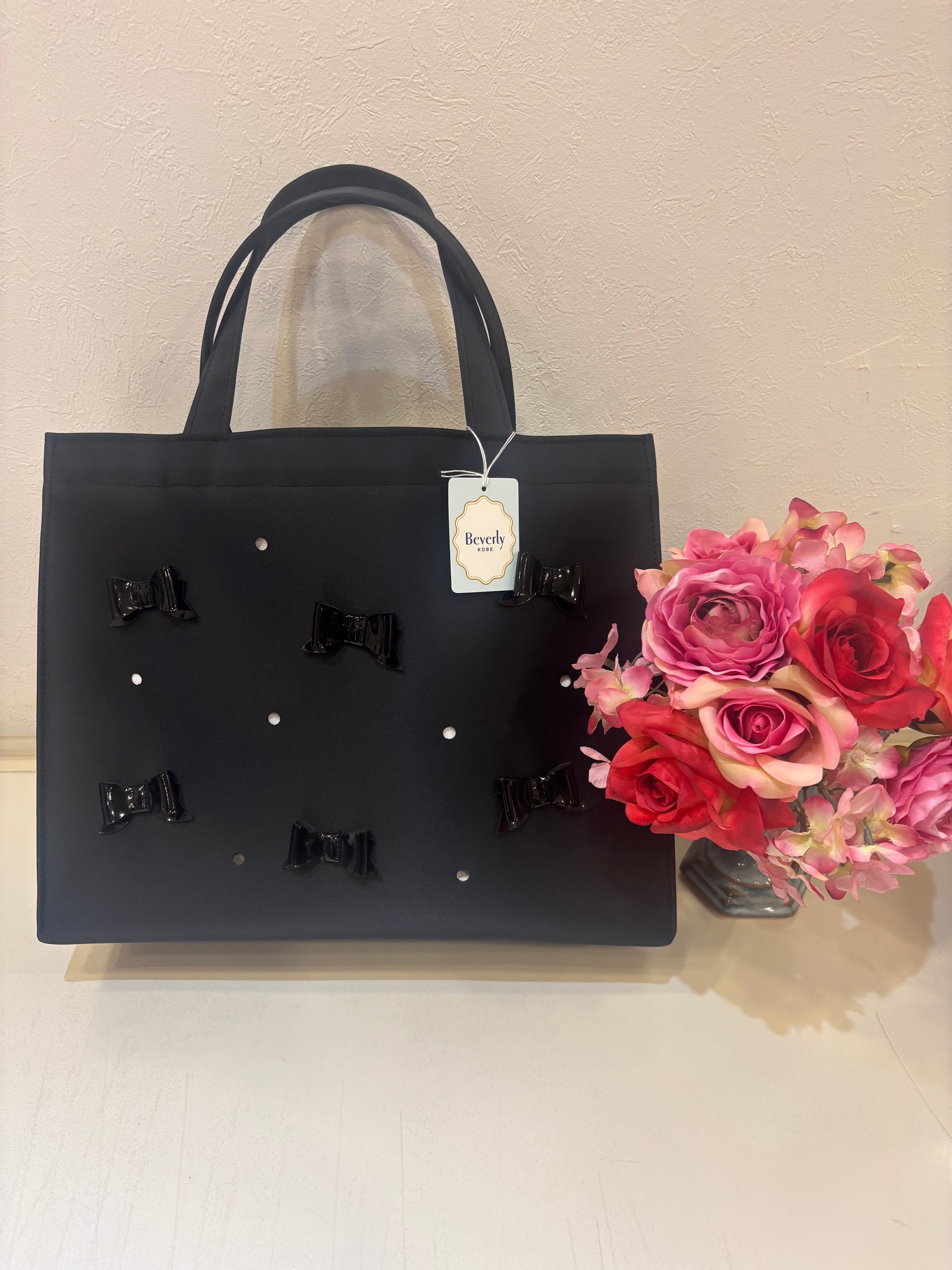 【神戸ブランド ビバリー】トートバッグ リボン ブラック