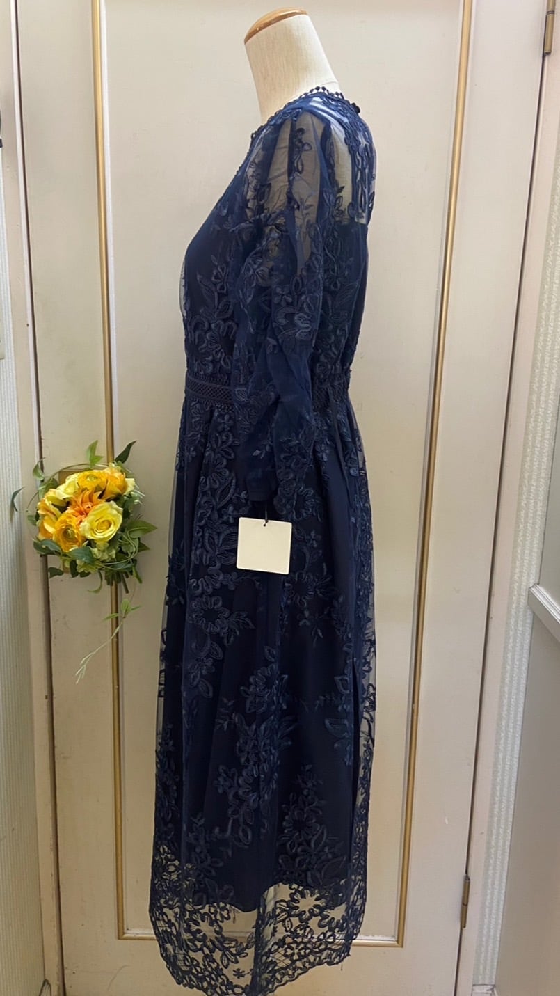 バックリボンレースロングドレス ネイビー