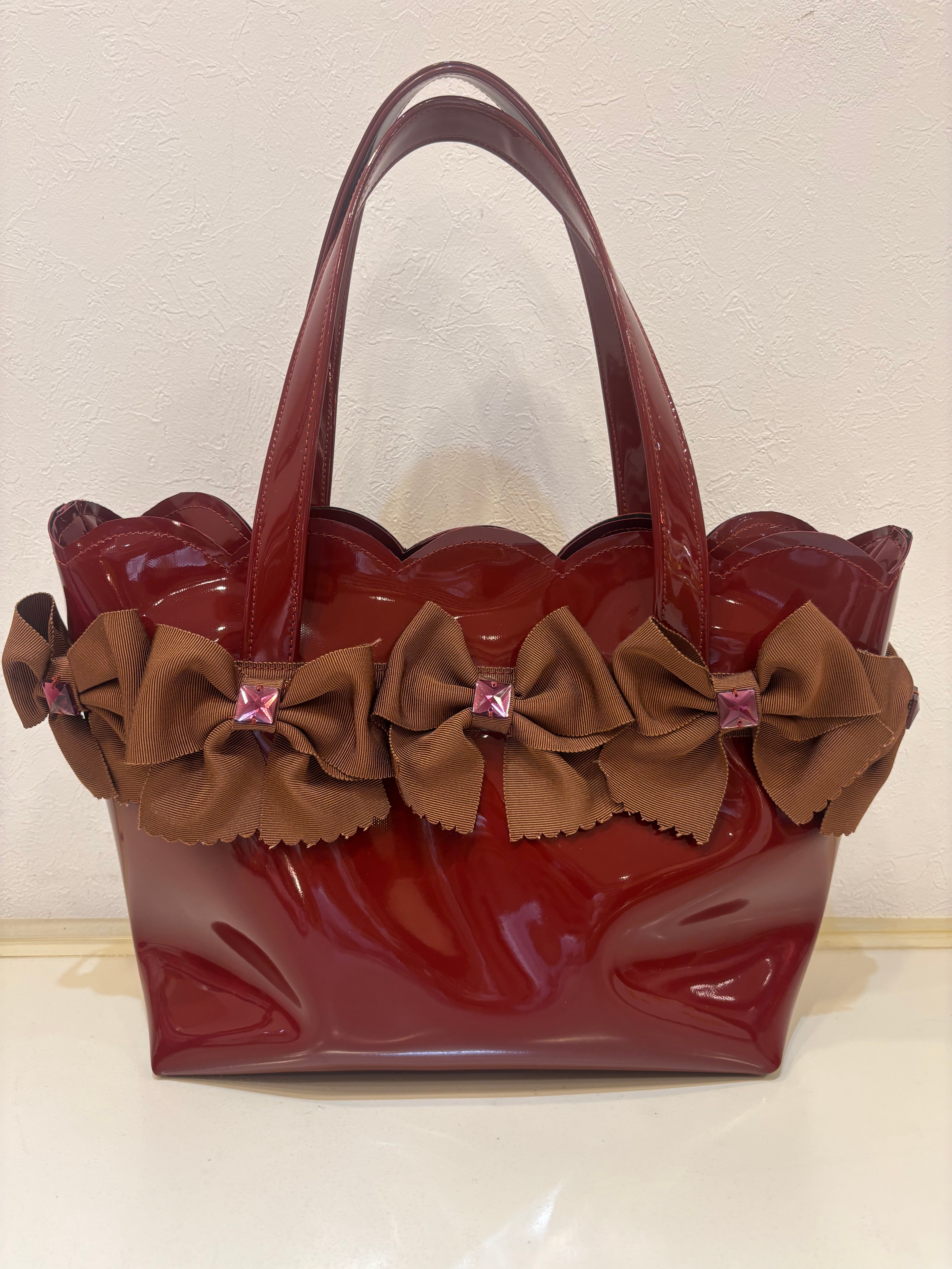【神戸ブランド ビバリー】グログランリボンスカラップバッグ ワインレッド